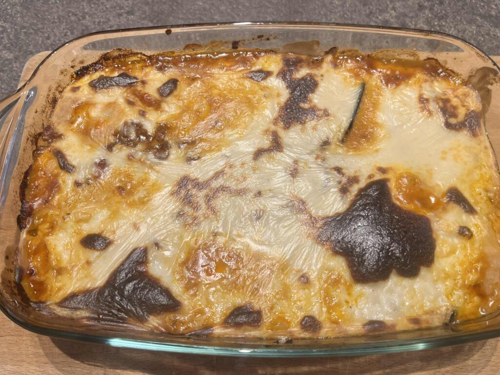 - Odpočinek: Po upečení nech musaku 15–20 minut odpočinout, aby lépe držela tvar při krájení.