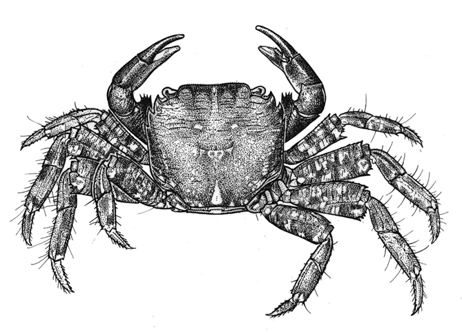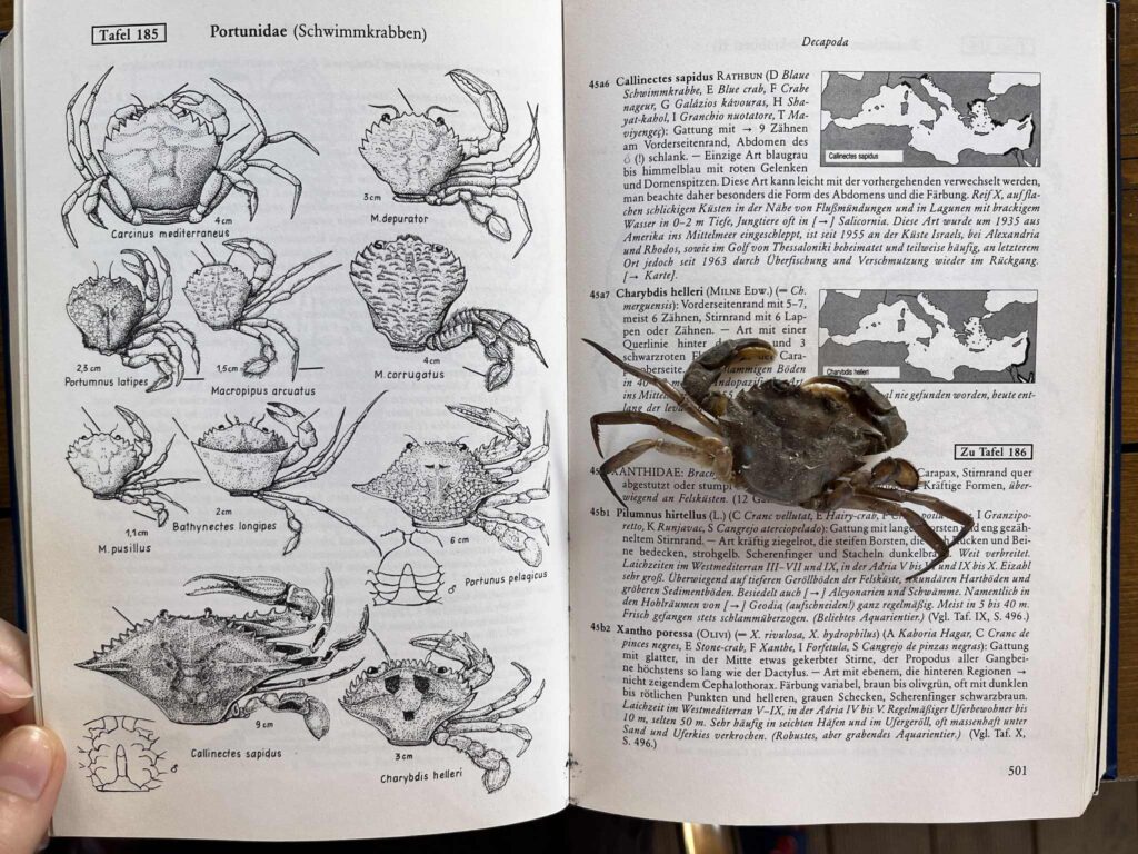 - Carcinus maenas – krab pobřežní****: Prevezská pláž, Agii Apostoli a Neochori, Pantokrator. Pozorování 1988 – 2025.