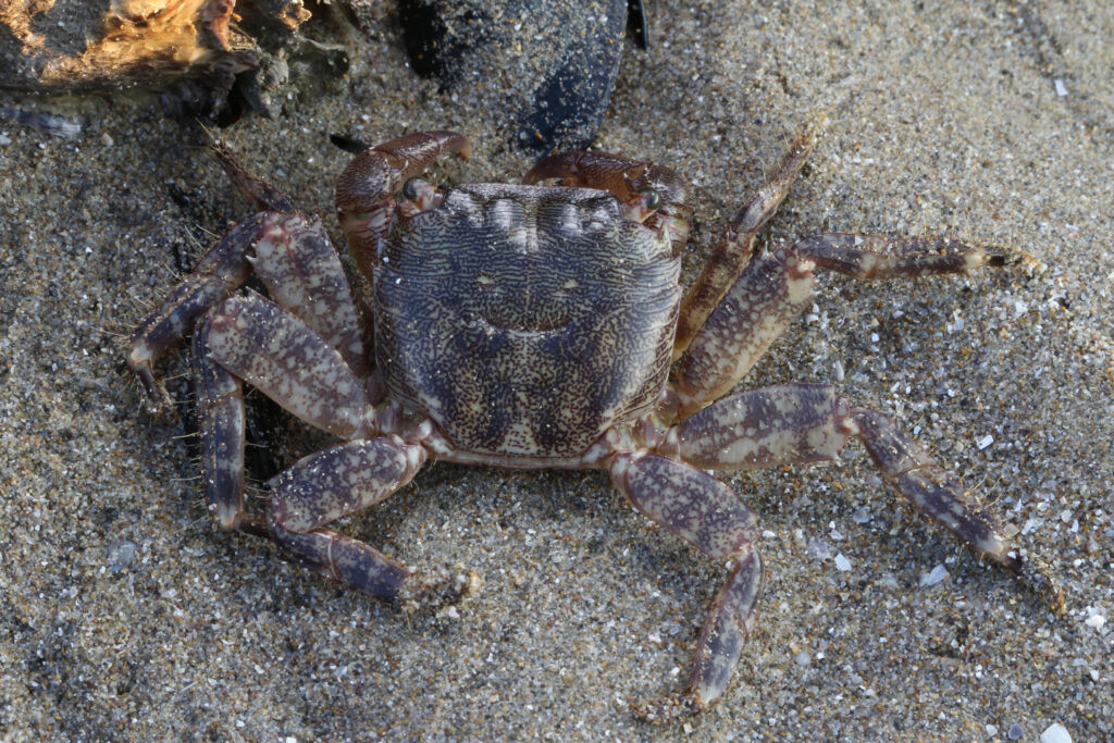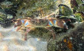 - Pachygrapsus marmoratus – krab měnlivý****: Plošné rozšíření na všech lokalitách, kde jsou kameny a pevný podklad. Pozorování 1988 – 2025.