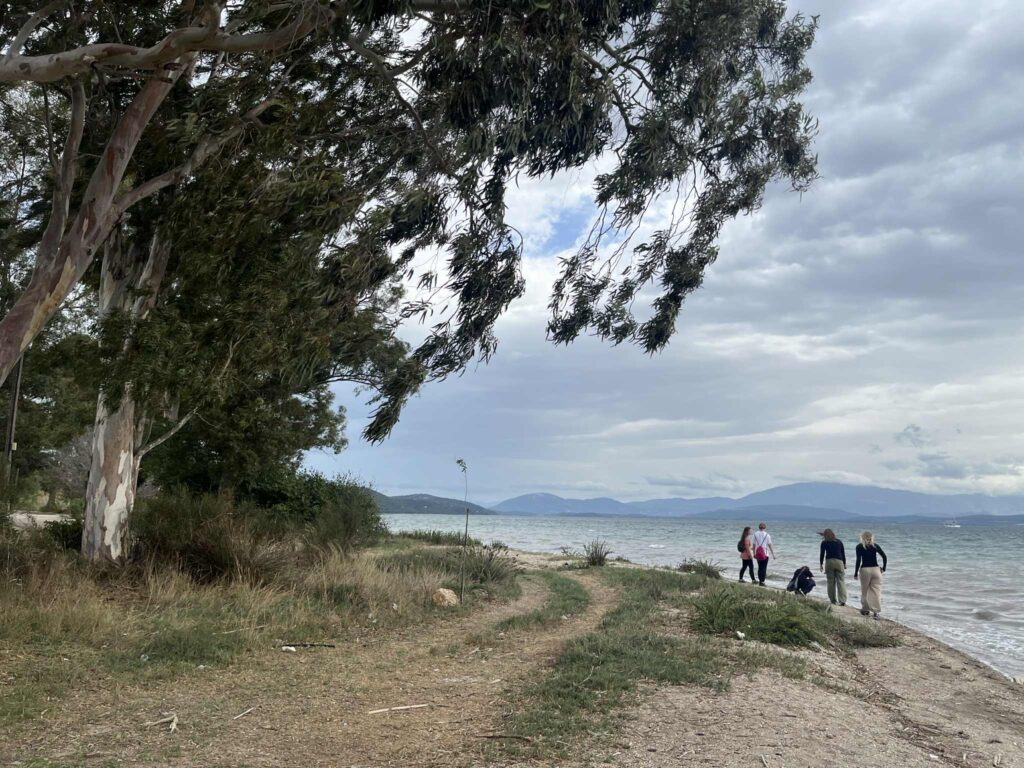 Geologický profil mořského břehu v Agii Apostoli. Na vysoké stěně břehu, odkrytého erozní činnosti moře jsou vidět, jako snadno rozlišitelné, vrstvy z období čtvtohor (vrstva ornice samotné a ornice obohacené slínem) a vrstvy horního pliocénu, vytvořené v průběhu třetihor (vrstva slínu, přechodně zaplavovaná, vrstva bělavého břidlicového obzoru, z níž vypadávají ulity plžů rodu Gourmya, jichž v současnosti používají poustevníčci (rodu Clinabarius) jako své „domečky“, a vrstva zuhelnatělé rostlinné hmoty, která byla v minulosti permanentně zaplavena. Na odkrytém břehu byly v roce 1998 (Dr. Rostislav Morávek – Vlastivědné muzeum v Olomouci) nalezeny části klu „lesního slona“ Loxodonta antiqua, který zde žil v Pleistocénu. Bylo to až 5 metrů vysoké zvíře, větší než mamut, které mělo kly delší než 3 m. Radiokarbonovou metodou bylo prokázáno, že nalezené části klu jsou staré 35 000 let (+ – 2500 let). Na tomtéž místě jsou od roku 1998 nalézány kamenné nástroje paleolitického člověka (žijícího před 40 tisíci lety) – kamenné nože, škrabadla, hroty šípů? Všechny tyto nálezy jsou v expozici Přírodovědného muzea v Neochori.